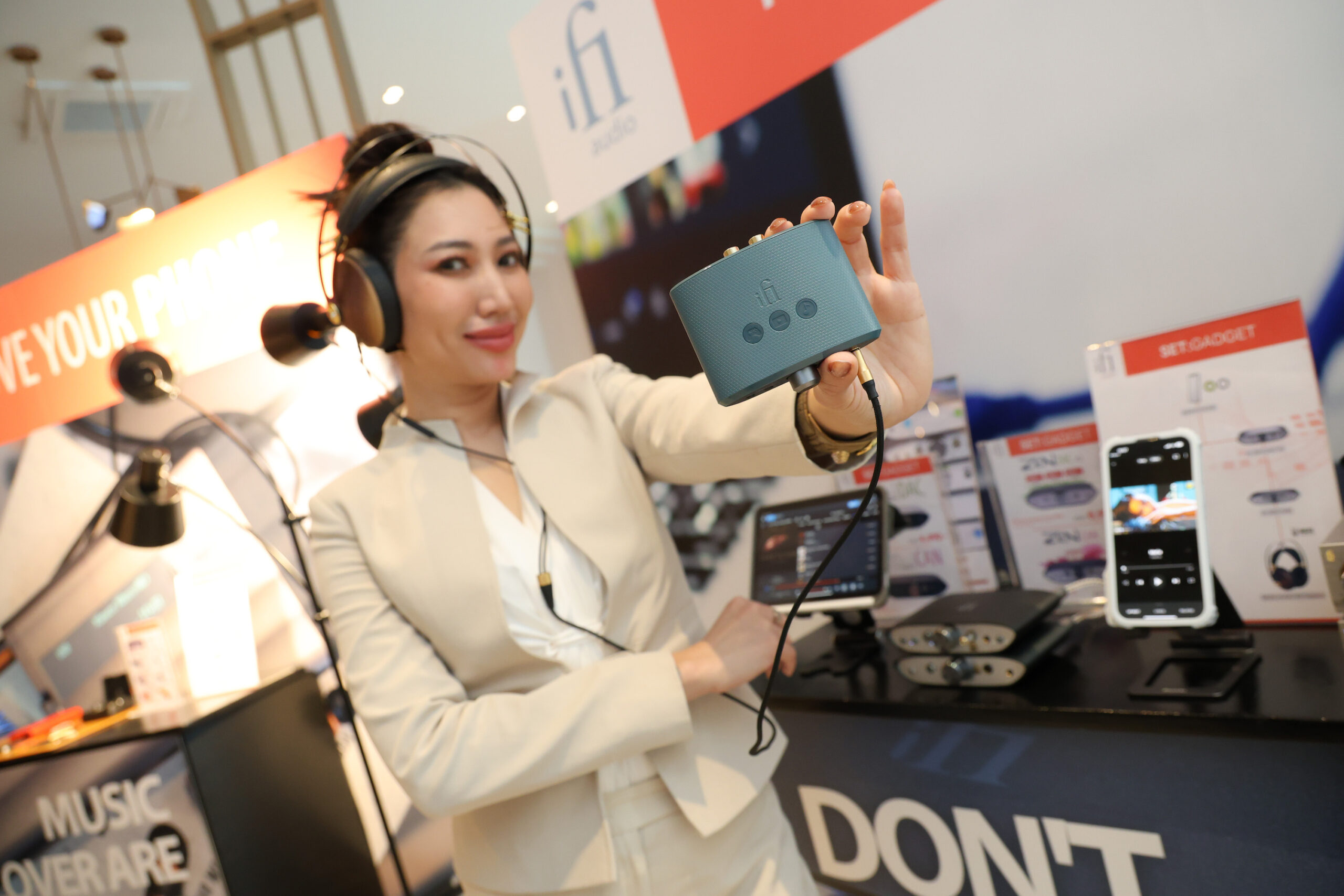 ส่วนไฮไลท์กลุ่มสินค้าประเภทตัวแปลงสัญญาณ (DAC) สำหรับหูฟังอินเอียร์ หรือ True wireless เช่น รุ่น iFi Go Pod ที่เชื่อว่าน่าจะครองใจวัยรุ่น และคนรุ่นใหม่สายแอคทีฟไลฟ์สไตล์ ที่ต้องการคุณภาพการฟังระดับ Hi-res ที่พกพาไปได้ทุกที่ iFi Go Pod มาพร้อมคุณสมบัติในการเปลี่ยนหูฟังอินเอียร์ตัวโปรดให้เป็นหูฟังHi-Fi audio ที่ใช้งานได้อย่างสะดวกกับขนาดที่เล็กกะทัดรัด น้ำหนักเบาแต่ละข้างมีน้ำหนักเพียง 12 กรัม มาพร้อมเทคโนโลยี Bluetooth 5.2 ที่เลือกใช้โมดูล Qualcomm QCC5144 ซึ่งเป็นสถาปัตยกรรมระบบประมวลผล 32 บิต 4 แกน รองรับ codecs คุณภาพสูง 24-bit ทั้ง aptX HD และ aptX Adaptive รวมถึง LDAC และ LHDC นอกจากนี้ยังติดตั้งไมโครโฟนสำหรับการโทรและคำสั่งเสียง กันน้ำได้ระดับ IPX5 และควบคุมแบบสัมผัส แบตเตอรี่ใช้งานได้นานสูงสุดถึง 7 ชั่วโมงต่อการชาร์จหนึ่งครั้ง ซึ่งถือเป็นการปฏิวัติการฟังเพลงผ่านหูฟังแบบเดิมๆ มาสู่ Hi-res สตูดิโอซาวด์ได้ง่ายๆ เพียงแค่มี iFi Go Pod