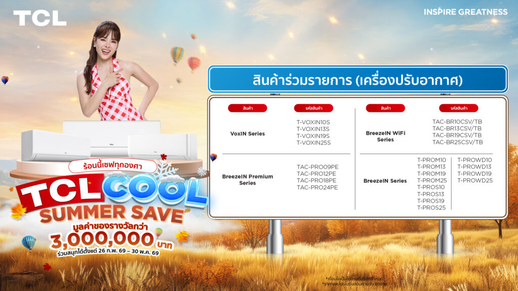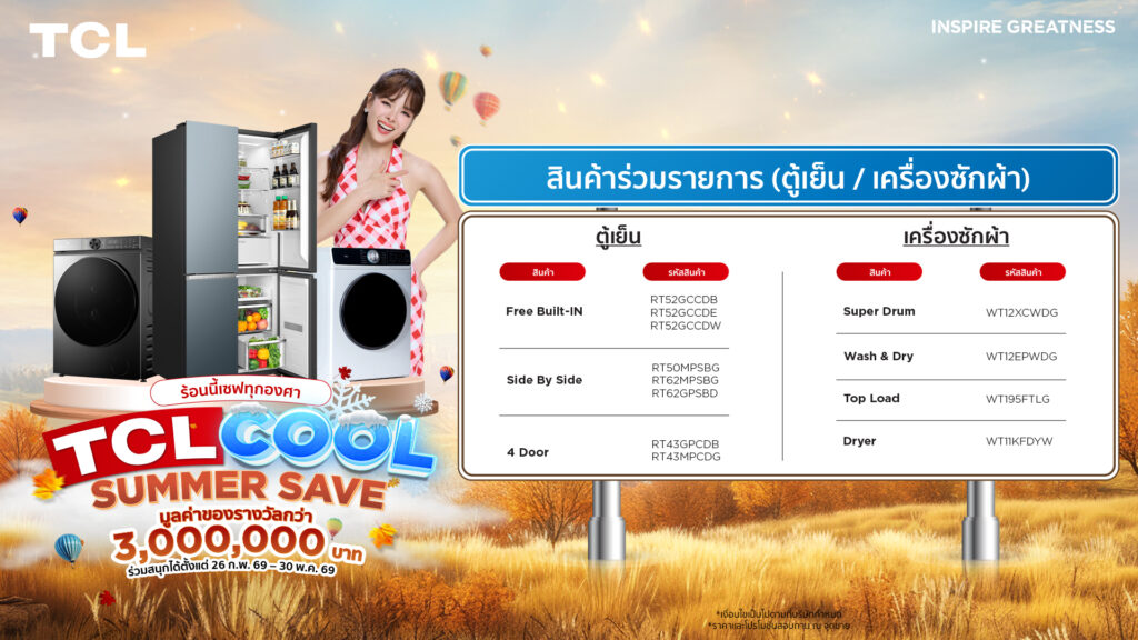 TCL เปิดแคมเปญ “TCL Cool Summer Save” ชวนช้อปคลายร้อน ลุ้นบินลัดฟ้าสู่ฮาร์บิน พร้อมรางวัลมูลค่ากว่า 3 ล้านบาท