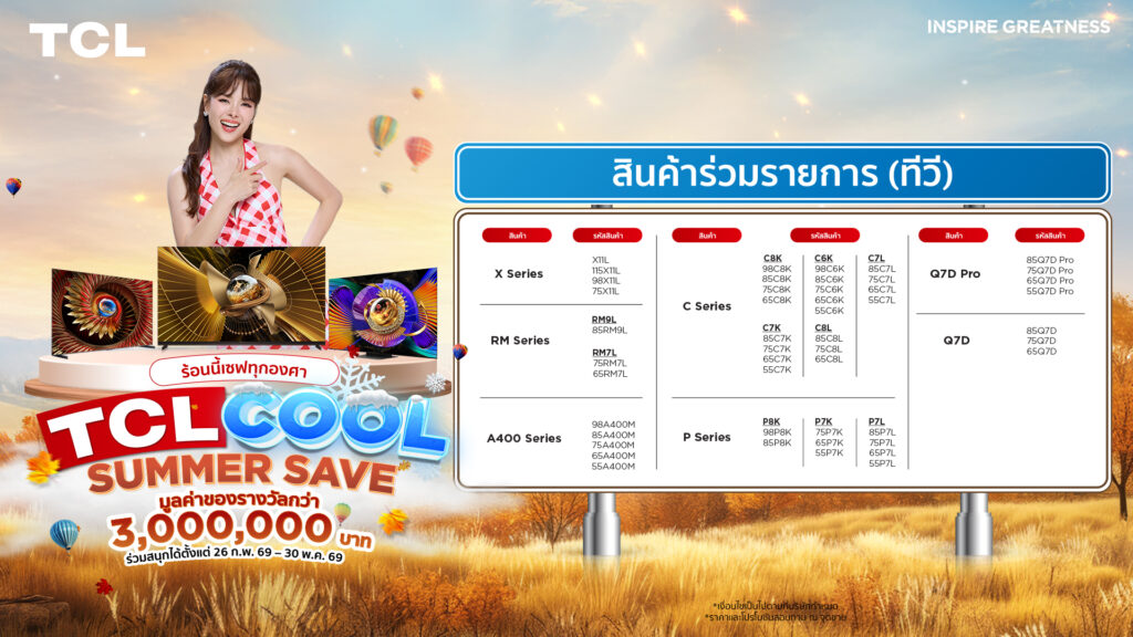 สามารถดูรายละเอียดแคมเปญเพิ่มเติมได้ที่ https://www.tcl.com/th/th/news/tcl-cool-summer-save