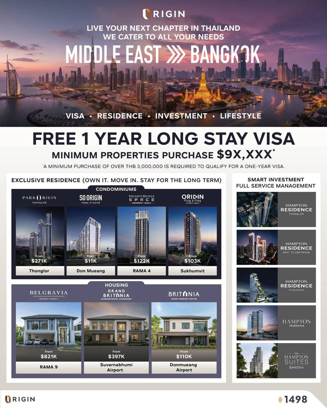 อีกจุดแข็งสำคัญคือการสนับสนุนจาก Thailand Longstay ในการอำนวยความสะดวกด้านวีซ่าและการพำนักระยะยาว ซึ่งช่วยลดความซับซ้อนของขั้นตอนสำหรับชาวต่างชาติ ขณะเดียวกัน ออริจิ้นยังเสริมบริการ Relocation Advisory แบบครบวงจร ตั้งแต่การหาที่พักอาศัย การขอวีซ่า การจัดการใบอนุญาตทำงาน การวางแผนทางการเงิน ไปจนถึงบริการหลังการขายและการขนย้าย เพื่อช่วยให้ลูกค้าต่างชาติเริ่มต้นการใช้ชีวิตในไทยได้ง่ายขึ้น